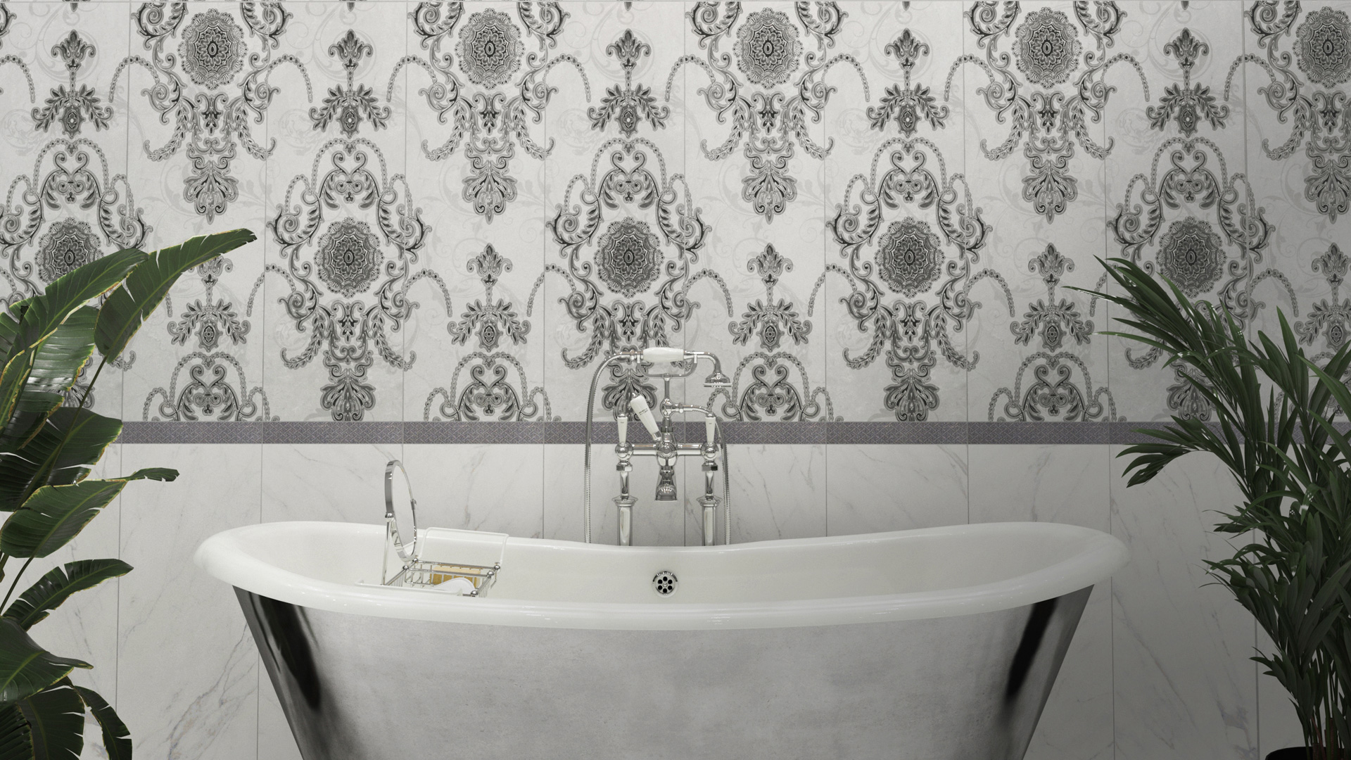 نگاه اجمالی : طرح Vienna از سنگ مرمر الهام گرفته شده است که دارای رگه های طوسی در متنی سفید می باشد که با نصب رندوم این مشخصه به زیبایی طرح می افزاید. این طرح در 6 سایز متفاوت تولید شده که هم برای محیط های درونی از جمله تمامی فضای خانه و هم برای محیط های بیرونی مانند مراکز تجاری تفریحی می تواند کاربرد داشته باشد. این طرح دارای دو نوع موزائیک و دو نوع قطعه دکوریA و B می باشد که این قطعات دکوری مکمل هم بوده و در هنگام نصب برای ایجاد طرحی منسجم باید کنار هم کار شوند.